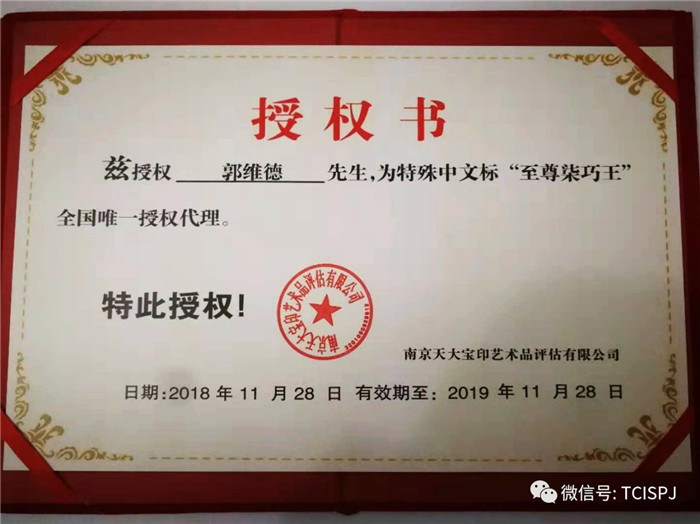 經(jīng)公司董事會商議決定:授權(quán)郭維德先生為我公司特殊中文標(biāo)《至尊“柒”巧王》全國唯一代理。